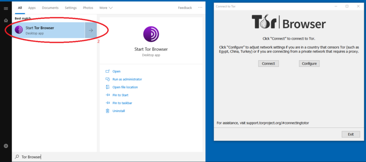 Once extraction or installation is complete, you can type “Tor Browser” from your Windows start menu then click on the Start Tor Browser (2) application (it may be called “Start Tor Browser.exe” on some systems) or click on the newly created desktop icon. On macOS, just start Tor Browser from the Applications menu.